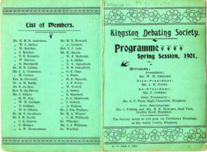 In the Spring of 1901 Kingston Debating Society [KDS], founded in 1886, had 48 members, although not all attended the debates held in that season.